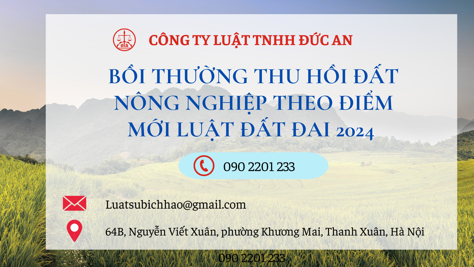 Để được tư vấn chi tiết và dịch vụ luật sư bảo vệ trong vụ việc thu hồi đất vui lòng liên hệ tại: